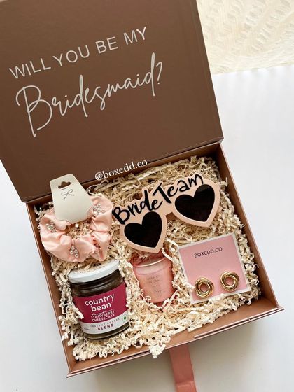 From "Will you be my bridesmaid?" proposal boxes to thoughtful gifts for the bride-to-be, I create personalized hampers for every wedding celebration. I focus on items that are both beautiful and useful for the bride and her entire squad.
