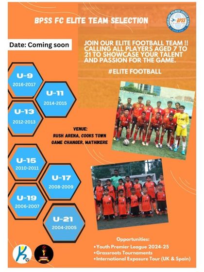 We’re BPSS, started back in 2007 with just pure football love. This place is more than drills and goals - we see tiny tots kicking for the first time, and old timers who’ve stuck with us for a decade, now playing Santosh Trophy. Our coaches? Always smiling, always rooting for every kid. We’re all about family vibes. Like we say, ‘We rise by lifting each other, Together Today Tomorrow and Forever’.