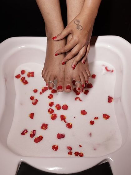 Nails - Think gel nail art designs or just a neat polish. I do rose petal soaks for feet - simple but feels fancy.