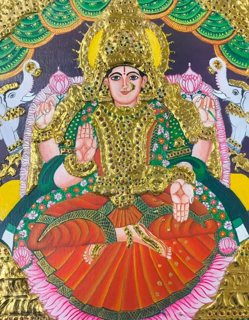 Learn the ancient and opulent art of Tanjore painting with us. Our structured classes demystify this intricate process, guiding you step by step from cone work and gold foiling to adding semi-precious stones and final colors, ensuring you create a divine masterpiece regardless of your experience level.