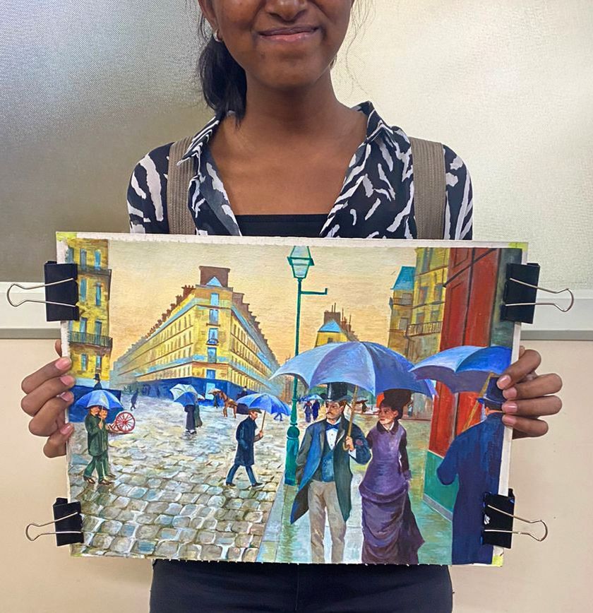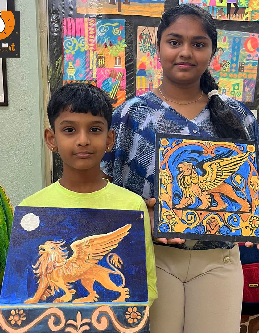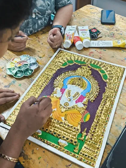 I believe in connecting with our rich artistic heritage. We explore the discipline and beauty of traditional Indian art like Tanjore painting, which involves intricate details, rich colors, and the application of 24K gold foil.