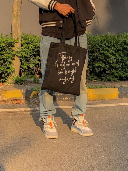 Find a bag that matches your vibe from our collection of ready-to-carry designs. We have everything from quirky quotes and animal prints to modern and abstract art, available in both classic black and versatile off-white cotton canvas.