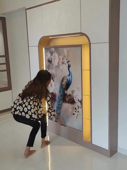 - Pooja Unit: Specialized CNC cut backlit mandir with bell hangings and storage.