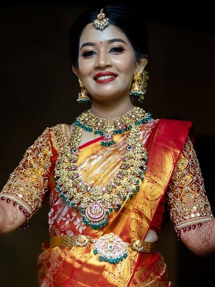 We’re Rashmi and Gayathri, founders of Bridal Raaga. Bit of a quirky pair, architect and doctor, but hey, we both adore South Indian traditions! Saw too many brides worrying about buying heavy jewellery they’d wear just once. So, we started Bridal Raaga – a place to rent gorgeous, premium jewellery for your big day. Our favourite part? Seeing our Brides of Bridal Raaga shine. Ashtu chanda, neenu! (You’re so beautiful!) We get to be part of your memories, and we love it.