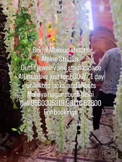 We rent out our Malviya Nagar studio with full access to bridal and non-bridal lehengas, jewellery, makeup station, backdrops, lighting, and flexible booking options for shoots, content creation, and student portfolios.