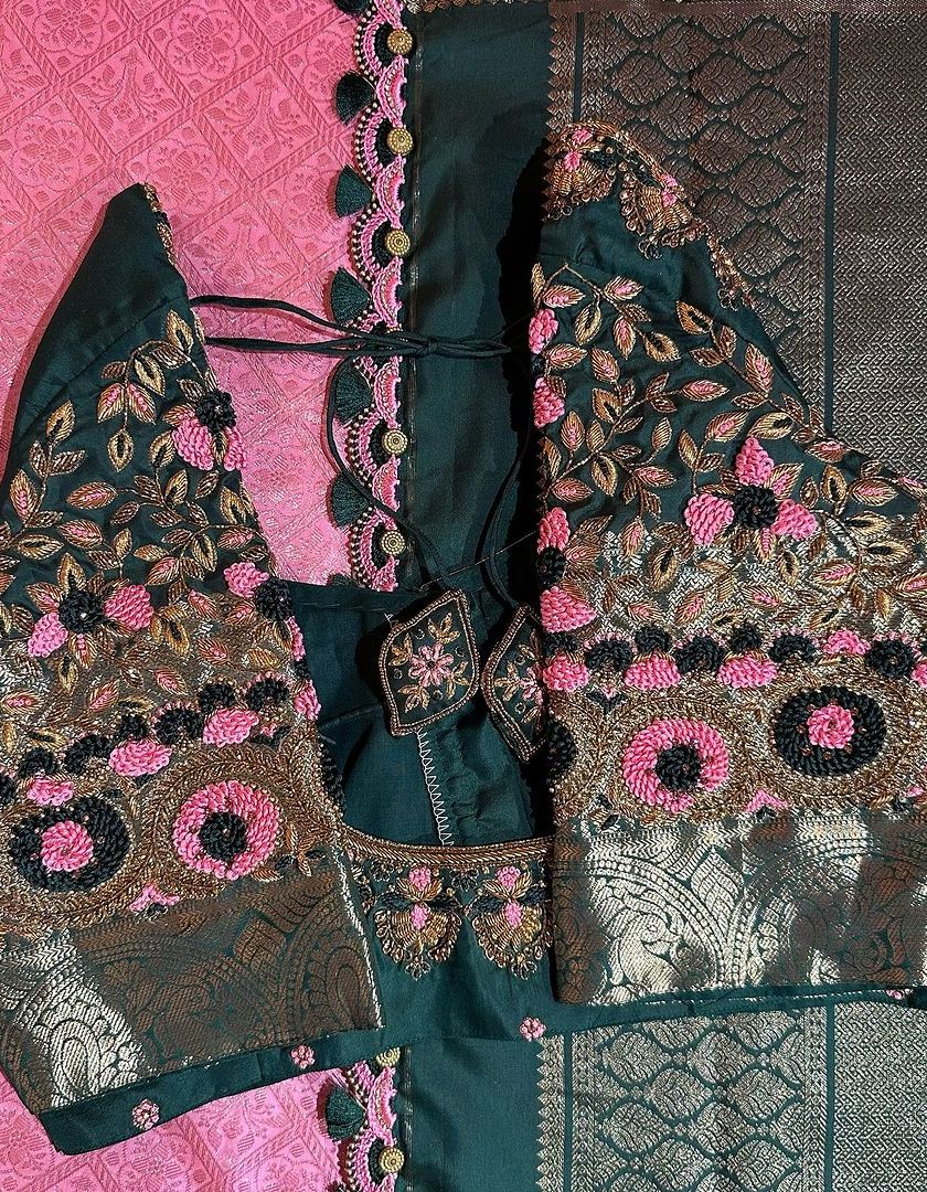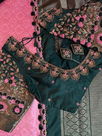 Every blouse is a canvas where we bring stories to life with threads and beads. I specialize in traditional techniques like Aari, Zardozi, and French knots to create detailed patterns, from classic florals and paisleys to custom motifs you dream up.