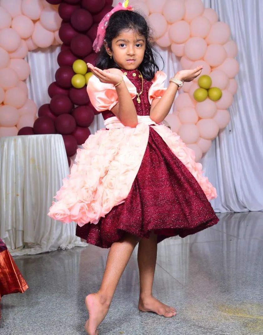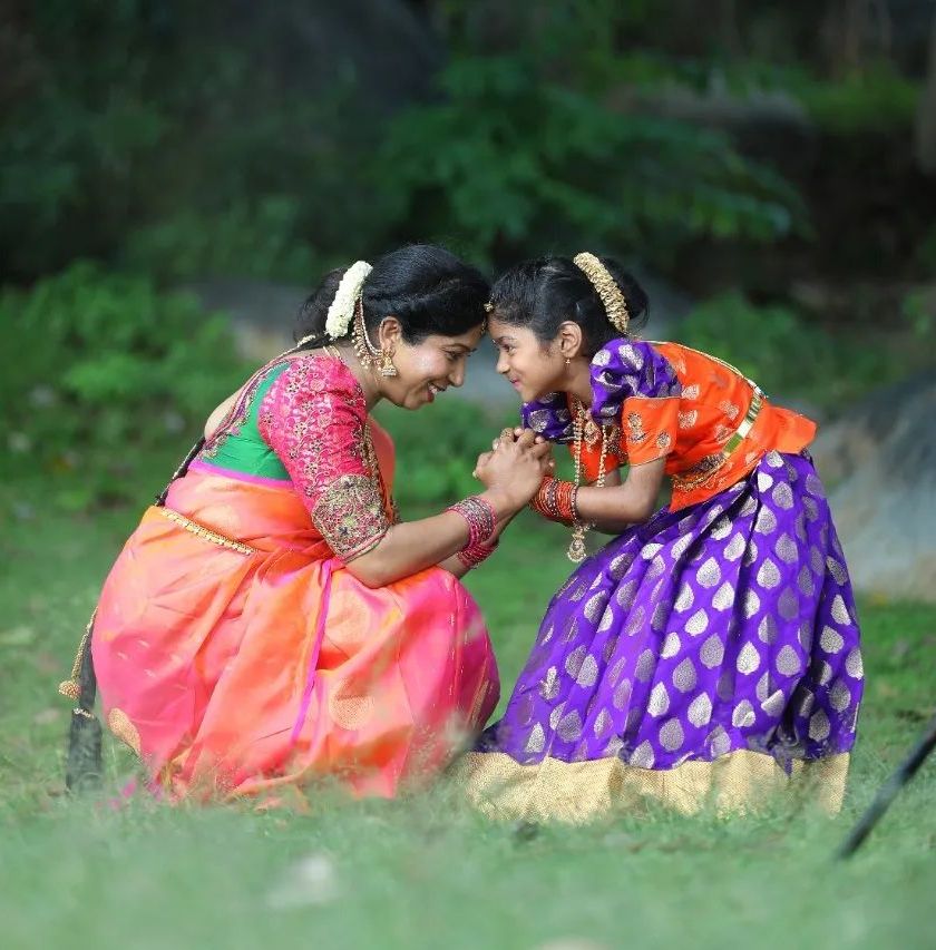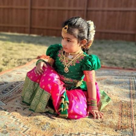 I specialize in creating timeless Pattu Pavadai sets for little ones, using rich silks and traditional zari work. Each piece is custom-made, available in classic designs with puffed sleeves or modern cuts to celebrate South Indian heritage.