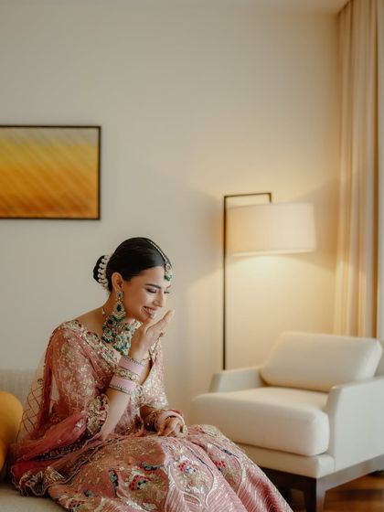 There is a special magic to pastel lehengas. This collection showcases soft, romantic, and dreamy bridal looks. I focus on creating an ethereal glow with luminous skin, soft-focus eyes, and delicate pink or nude tones to perfectly complement the softness of pastel and ivory outfits.