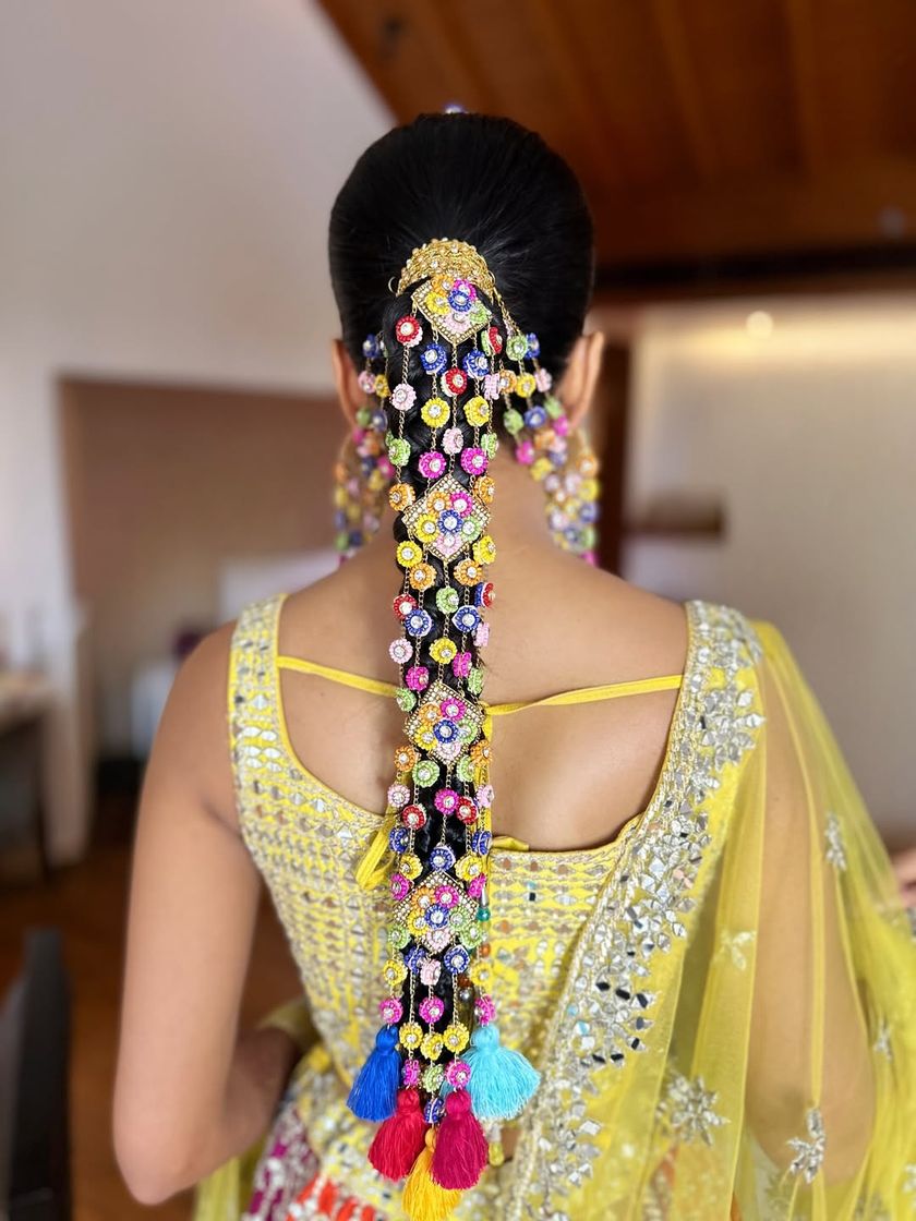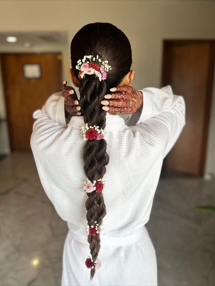 A bridal look is incomplete without the perfect hairstyle. This gallery is a showcase of my passion for creating intricate and beautiful hair designs that last. From traditional braids with fresh flowers and parandis to sleek updos and dreamy waves, I style hair that tells a story.
