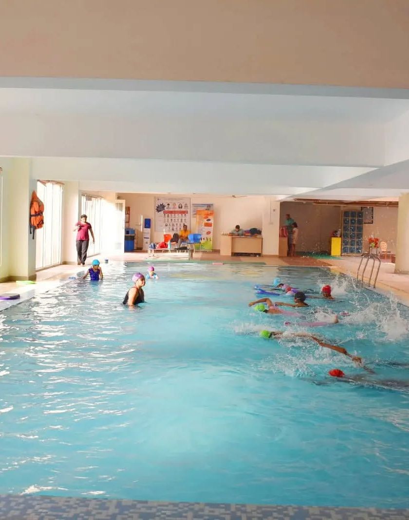 We have a semi-Olympic size heated indoor pool, so you can train comfortably all year round. Our batches are structured with lane lines for focused fitness swimming, not just casual splashing.
