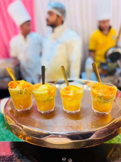 Desserts & Drinks - Finish strong with mango falooda, Lotus Biscoff cheesecake, and our artisanal ice cream bar. We also do coffee and tea setups.