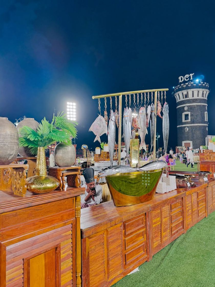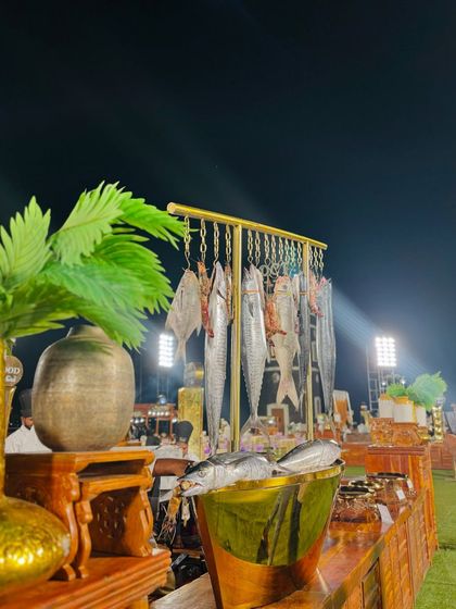 For seafood lovers, I offer a spectacular live counter featuring the freshest catch of the day. From whole Surmai and Pomfret grilled or tawa-fried to perfection, to crispy Golden Fried Prawns and spicy Prawns Koliwada, it's a true coastal feast.