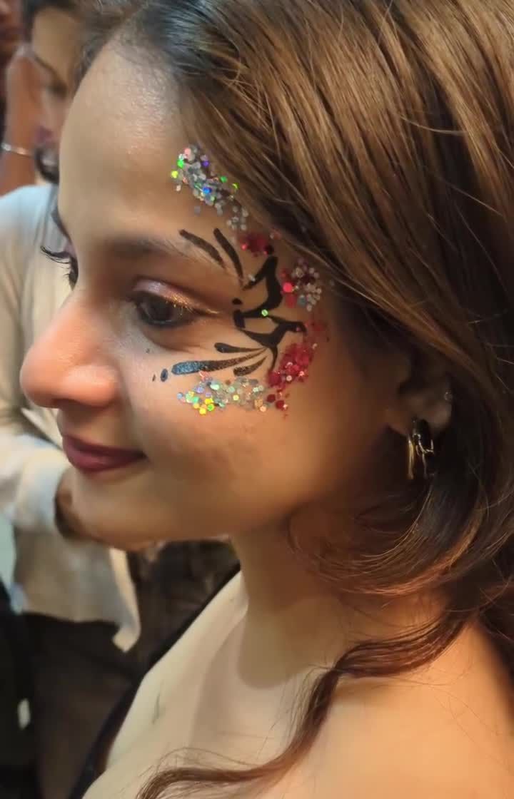 My glitter bar is perfect for adding sparkle to weddings, sangeets, concerts, and glow parties. I provide everything from subtle shimmers and neon highlights to bold glitter tattoos and intricate face gems. All glitter is cosmetic grade and applied with skin-safe adhesive.