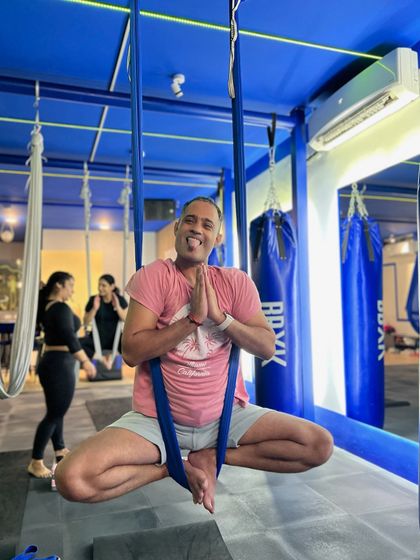 We mix classic yoga with a soft hammock hanging from the ceiling. That hammock is your buddy - it helps you try things you didn’t think you could do, and sometimes just lets you chill mid-air. Sometimes it feels like "controlled chaos", but that’s part of the fun. Not every move is graceful, and trust me, we all lose balance and crack up together.