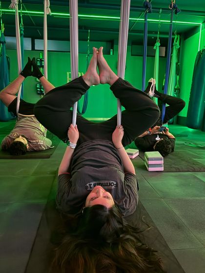 Learn more about the specifics of our aerial yoga classes. Understand the benefits, what to expect, and why it's a great fit for all fitness levels.