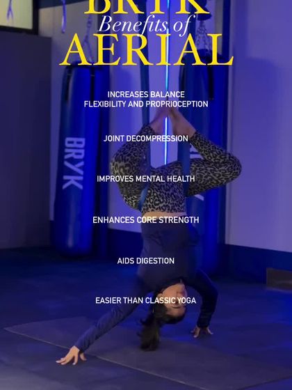 This is the first impression, designed to capture the energy, results, and community spirit of our aerial yoga classes. It’s a mix of inspiration, social proof, and the unique vibe of BRYK Studio.