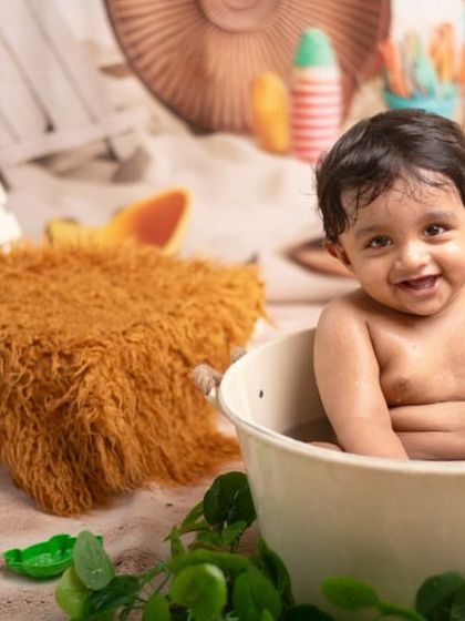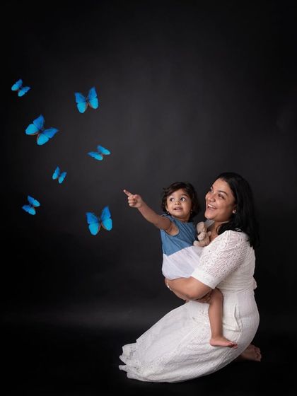 I do baby and child photography in my Akshayanagar studio, focusing on safe newborn sessions, milestone shoots, fun themes, and including family in the photos.