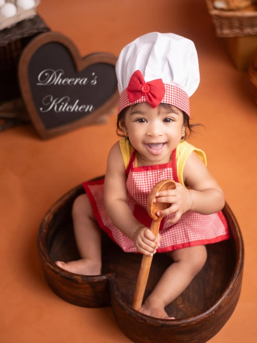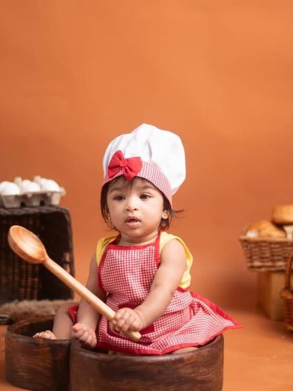 Let's bring your imagination to reality! I absolutely love designing creative themed photoshoots for babies and toddlers. Whether it's a magical Harry Potter setup, a 'Little Chef' half-birthday, or a dreamy princess session, I have all the props and costumes to make it happen.