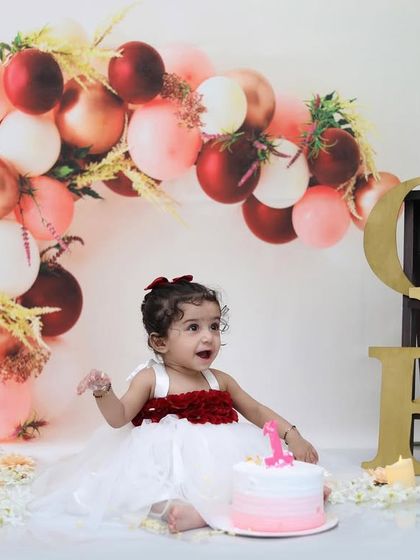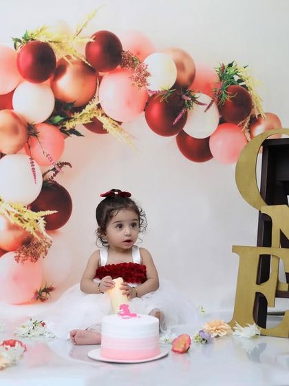 We set up themed first birthday and cake smash sessions with full props, custom setups, and family portraits, capturing real moments in our Delhi studios or outdoors.