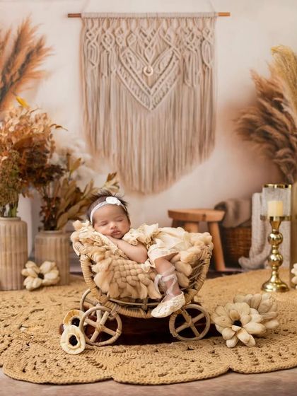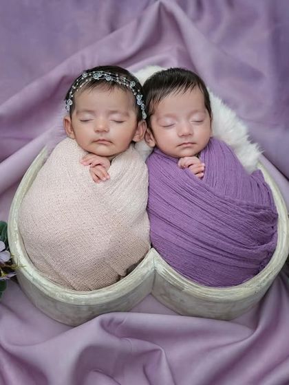 We photograph newborns aged 5 to 15 days in our Delhi studios with all props and setups provided, including family and twin sessions, focusing on safety and natural poses.