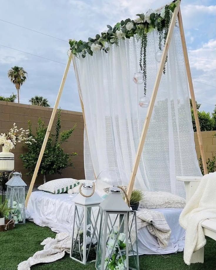 My dreamy canopy and picnic experiences are perfect for a unique date night, a surprise proposal, or a chic photoshoot. I use custom-built wooden canopies, macrame teepees, and elegant A-frame tents to transform any space, from your backyard to a lakeside, into a cozy and magical haven.
