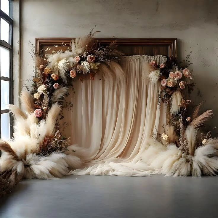 A stunning backdrop is essential for creating memorable photos. I design and build custom backdrops for any event, using a variety of materials like shimmering sequins, flowing fabrics, modern wooden arches, and lush florals to create the perfect photo booth or stage setting.
