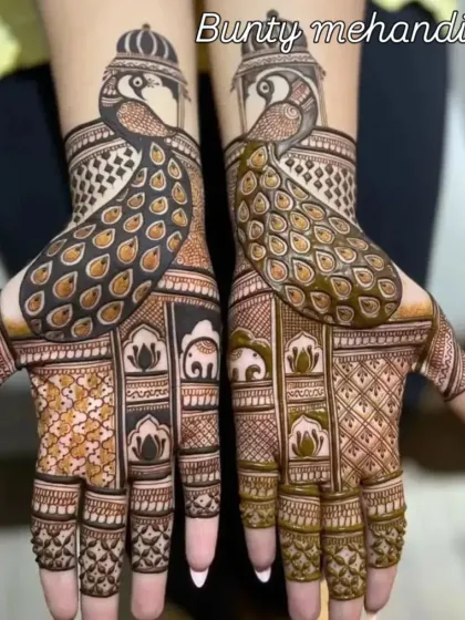 I specialise in Rajasthani wedding mehndi patterns. Think classic stuff - peacocks, elephants, lotus, doli, kalash, and jaal bharni work. The designs are super detailed and neat, nothing rushed.
