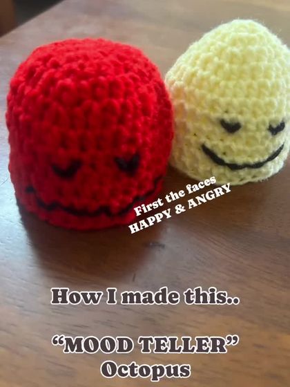 - Got moods? My reversible octopus crochet toy is a desk buddy that flips between happy and grumpy, no words needed.