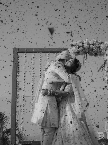 Hey! We’re Kinjal and Shashank - Busy Bee Studio. People call us the awesome twosome, and yeah, we dig it. We’re just two folks who love telling love stories with our cameras, sometimes typing 'storty tellers' by mistake (it stuck, what can we say). Being a couple, we get those little things - the glances, the silly jokes, the chaos and the calm. We chase fairytales, freezing those real moments, wherever your story takes us.