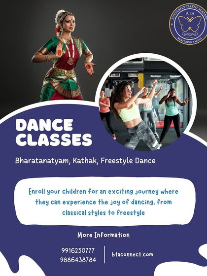 We teach Bharatanatyam, Kathak, hip hop, and contemporary dance to all ages and levels, with a focus on safe technique, regular stage shows, and diploma options in our own studio space.