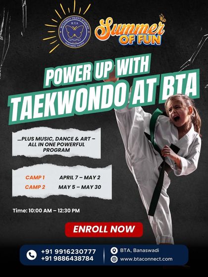 We run summer camps where kids can try art, dance, music, taekwondo, yoga with stories, and theatre with a real stage show, plus hands-on workshops and transport options.