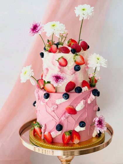 We make custom buttercream cakes for special occasions, focusing on flavour and design with options for tiers, shapes, and toppers, all made to order.