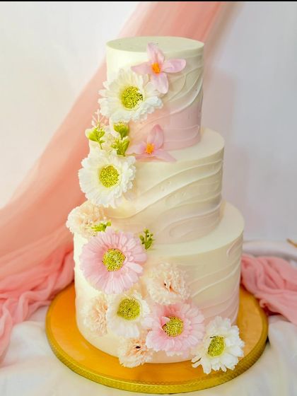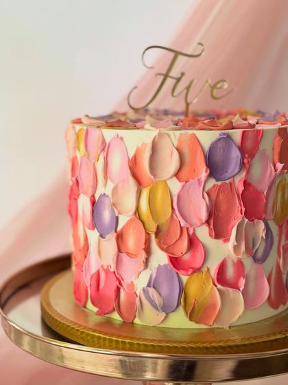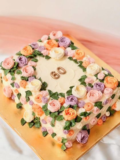 We make custom buttercream cakes for special occasions, focusing on flavour and design with options for tiers, shapes, and toppers, all made to order.