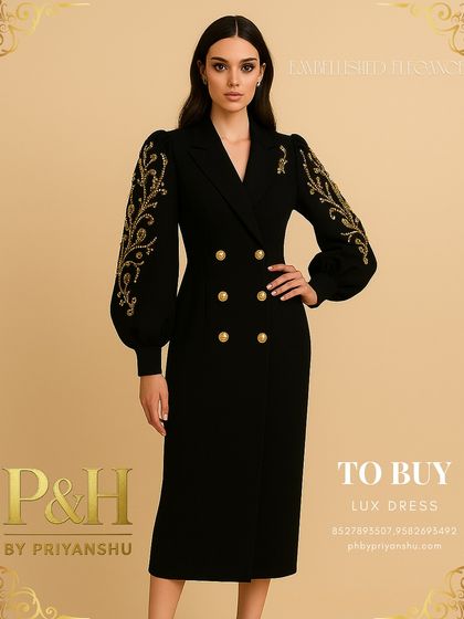We create custom couture suits and gowns with bold designs, sculptural tailoring, and hand-embroidery for clients who want unique, standout outfits for red carpet and special events.