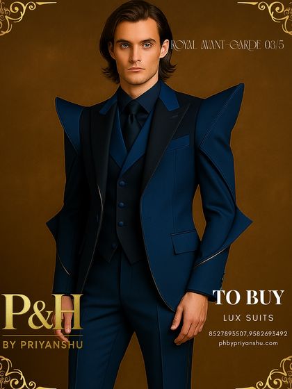 Royal Avant-Garde Suits - Our signature suits feature sculpted shark-fin shoulders and futuristic lines for men who own every room.
