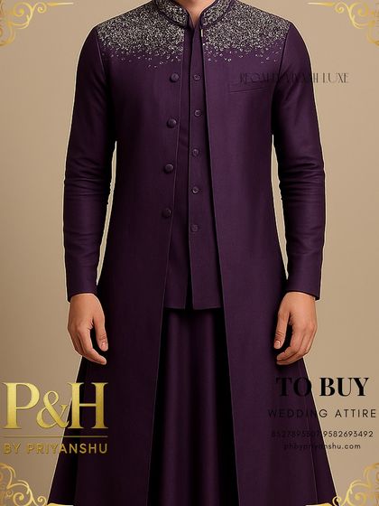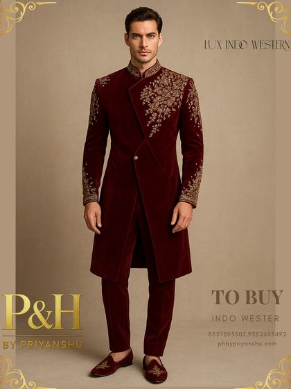 We make custom Indian wedding outfits for men with hand-embroidery, luxury fabrics, and doorstep measurements, blending traditional and modern styles.