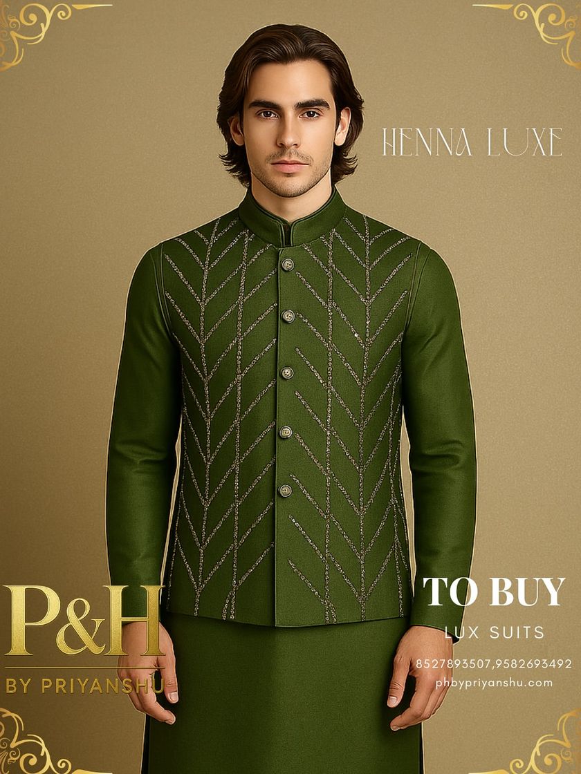 I design these ensembles specifically for the vibrant atmosphere of Mehndi and Sangeet ceremonies. The collection features comfortable yet stylish kurta sets, modern Nehru jackets, and lightweight suits in celebratory colors, all featuring my signature handcrafted details to ensure you look your best during the festivities.