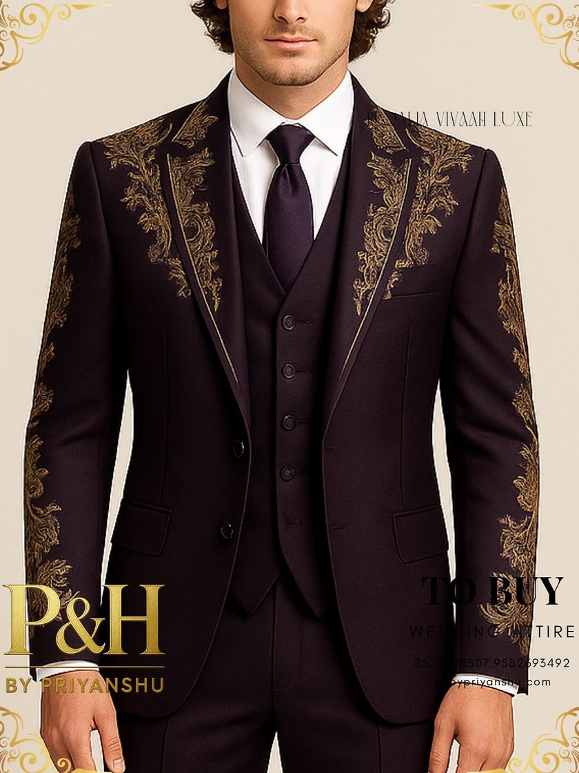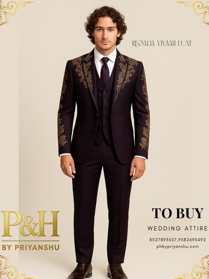 For receptions, cocktail parties, and black-tie events, I blend classic Western tailoring with distinctive Indian artistry. This collection features three-piece and double-breasted suits crafted from fine Italian fabrics and velvets, each elevated with unique hand-embroidery to ensure you make a lasting impression.
