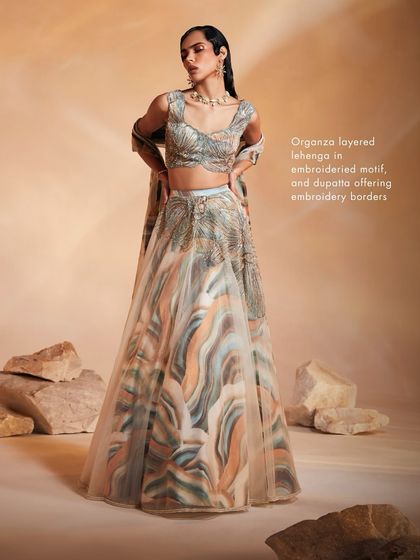 - Lehengas that look nothing like what your mom wore. You’ll see modern lehenga with cape sleeves, bold prints, and corset blouses.