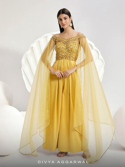 - Fusion sharara set with sharp tailoring and hand-embellished details - a total head-turner, but not over-the-top fussy.