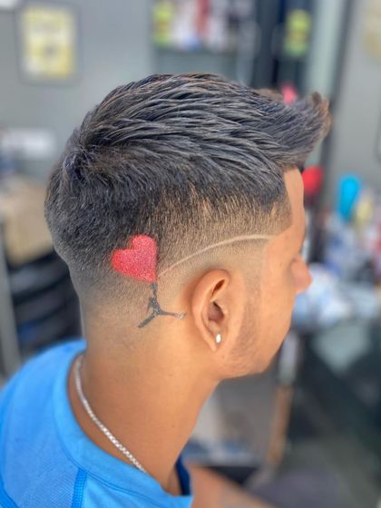 Want a look that stands out? I use high-quality colors for everything from a bold splash of blue to vibrant lime green, often pre-lightening the hair for maximum pop. For clean graphics like logos or hearts, I use professional airbrush and stencil techniques.