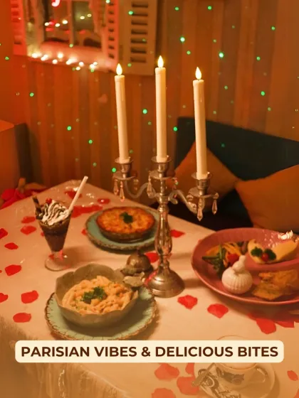 We offer a Parisian-themed cafe in Gurugram with unique seating, European-inspired menu, dessert bar, private dining options, and weekday meal discounts.