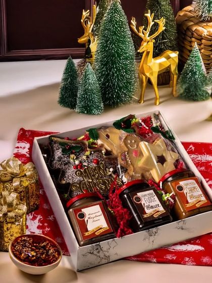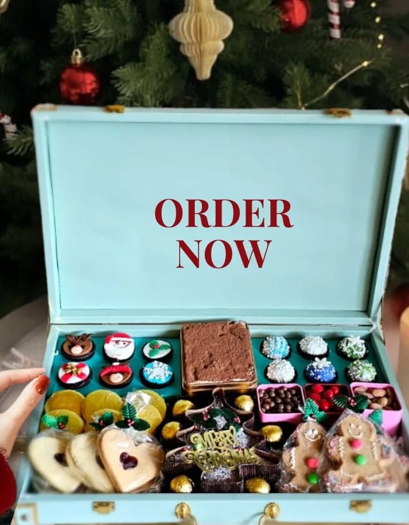 Experience the magic of the holidays with my collection of festive gifts. I offer everything from grand, showstopping hampers in reusable trunks to traditional plum cakes, gingerbread cookies, and charmingly decorated mini cupcakes perfect for sharing.