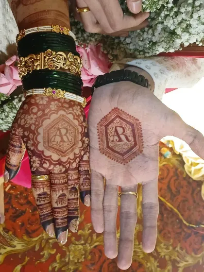 This is my absolute passion. I specialize in creating one-of-a-kind henna designs that tell your personal story, featuring everything from couple portraits and initials to meaningful symbols and inside jokes.