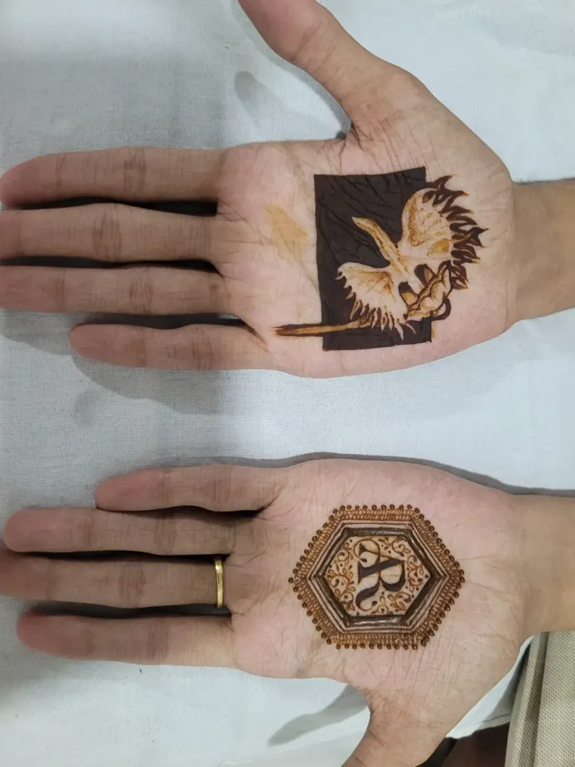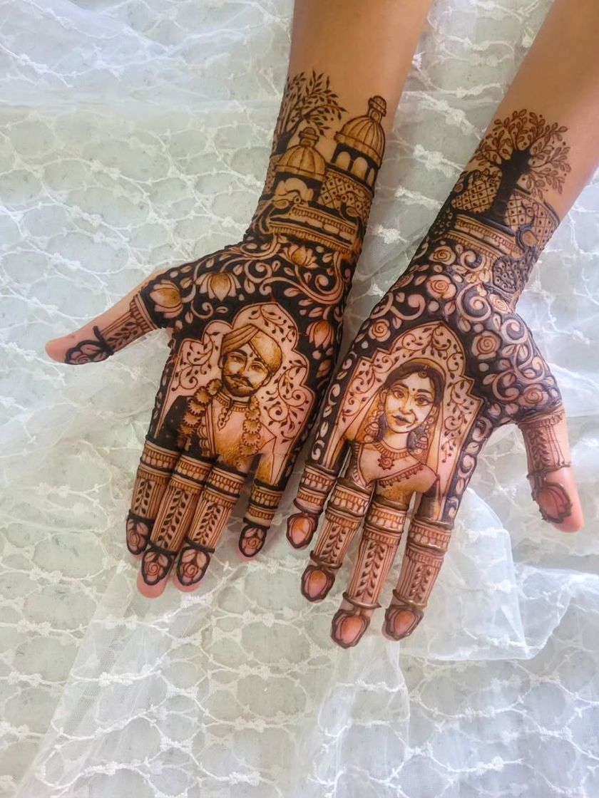 Mehendi isn't just for brides. I design custom henna for grooms, often featuring initials, meaningful symbols, or even portraits that complement the bridal design.