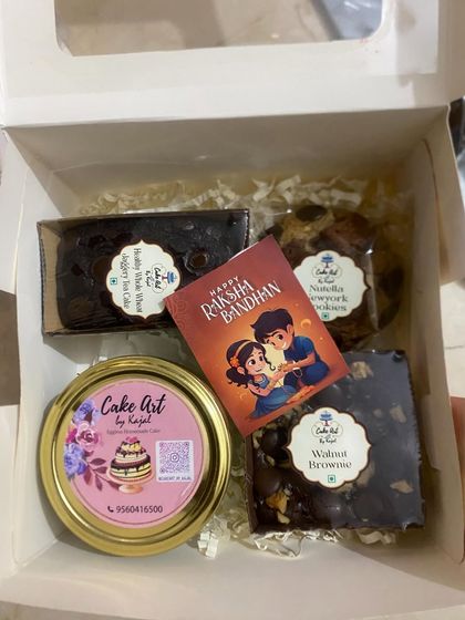 I make fresh, 100% eggless dessert boxes and gift hampers from my kitchen in Pitampura, with customisation, health-friendly options, and quick pick-up available.