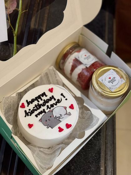 For those extra special moments, I create complete gift hampers that go beyond the cake. These curated boxes can include a custom bento cake, cupcakes, cake jars, fresh flowers, and assorted chocolates. They are thoughtfully assembled to create a memorable gifting experience.