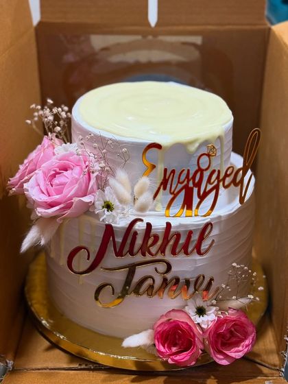 Couples seeking personalized cakes for their engagement ceremonies and intimate weddings who value both aesthetics and taste, and want their cake to be a centerpiece of their celebration.