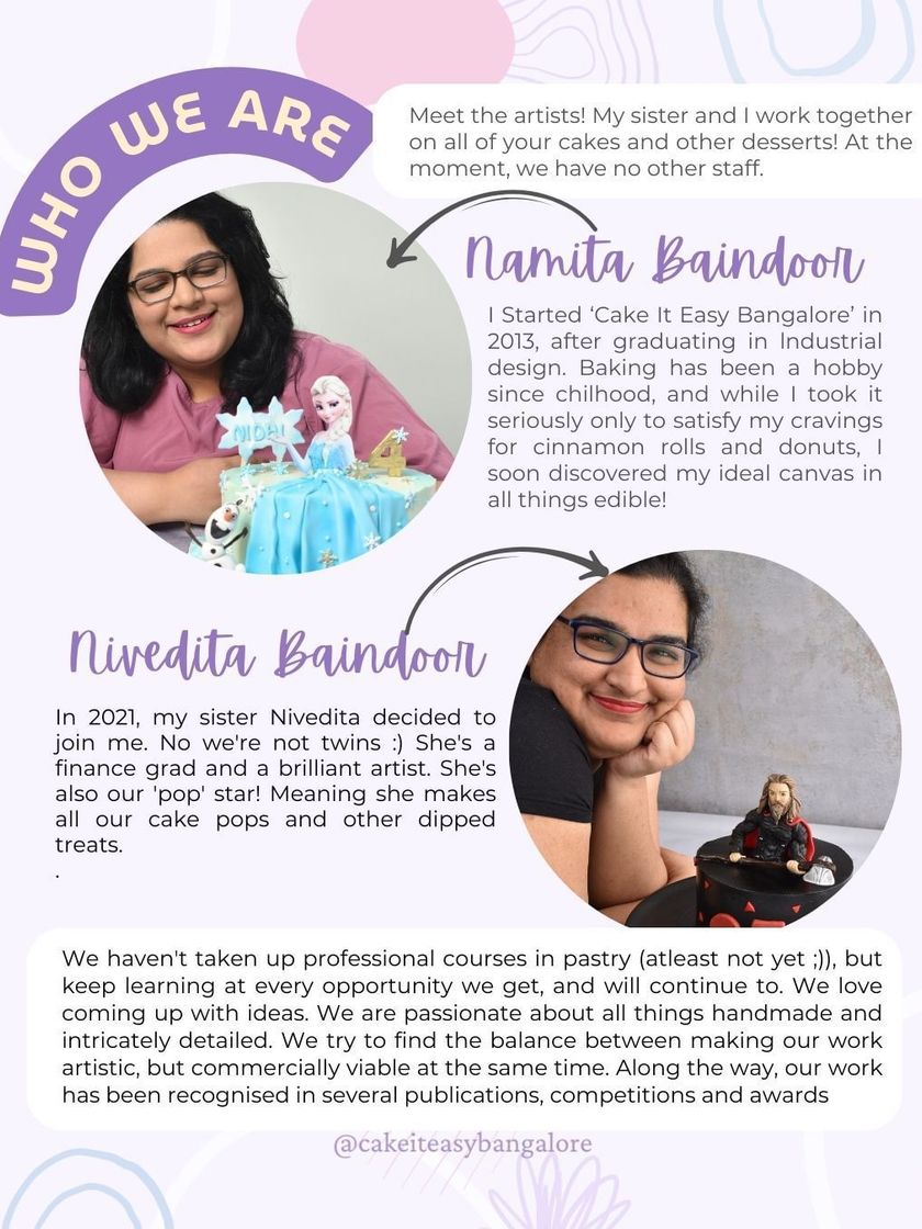 Sometimes you need more than just cake, or maybe you're looking for the perfect party favor. My sister Nivedita and I create a wide range of smaller desserts, including themed cupcakes, baked donuts, cakesicles, cake pops, and chocolate piñatas. These can be ordered to complement a larger cake or as a standalone treat, with minimum order quantities for each type.