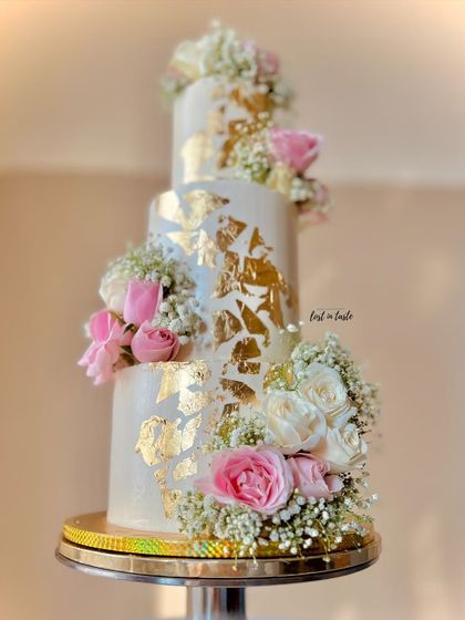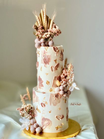 Swiss buttercream is my jam. I do vintage Lambeth piping for those old-school romantic feels, and minimalist bow cakes that look straight out of Pinterest. Big luxe tiered cakes for weddings and milestone birthdays? Sorted - gold leaf, fresh flowers, the works. If you want boho themed cakes or something quirky like a "pyaar ek dhoka hai" (love is a scam) cake, I’m up for it.